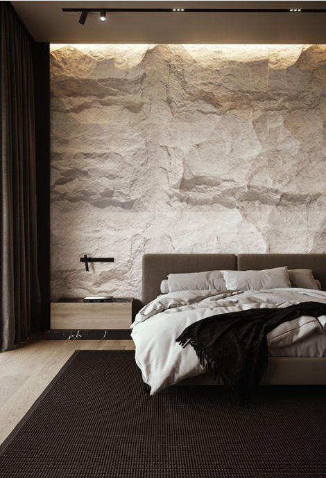 We drew inspiration from the layered, shadow-kissed mushroom rock formations found in sun-dappled canyon crevices—where soft, light-washed stone meets deep, earthy shadowed edges, shaped by subtle erosion over time. Think the quiet drama of canyon walls at midday, where gentle texture blends with rich tonal contrast: this flexible stone translates that natural, sun-baked character into a design that carries the warm, layered depth of rock carved by light and time.