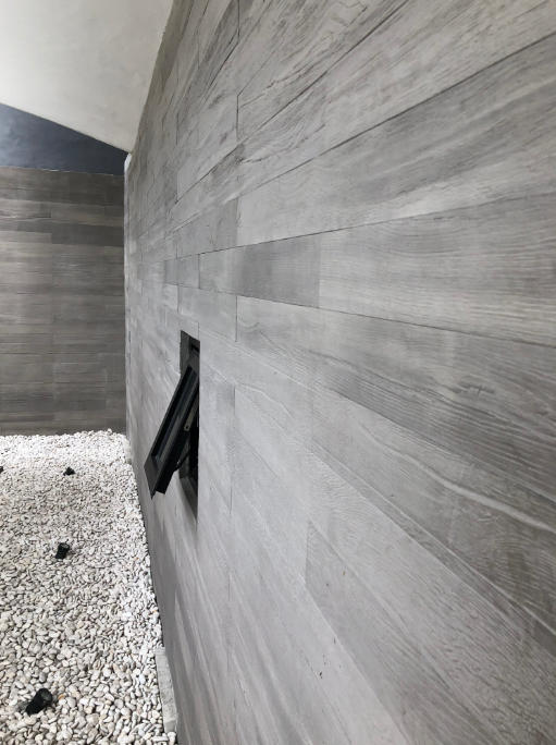 We drew inspiration from the organic beauty of solid wood—its unique, flowing grain patterns shaped by years of growth, and the warm, tactile texture that brings a sense of calm to any space. This flexible stone translates that essence: its natural grain details and soft finish mirror the unforced charm of real wood, merging the timeless warmth of natural timber with the practicality of modern flexible material.