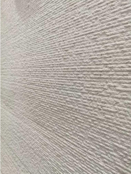 This flexible stone mirrors the signature character of Greek Tyros stone: fine, uniformly spaced parallel ridges that create a subtle linear grain (soft to the touch, with gentle dimensionality) paired with a matte, velvety finish. Tonal variations are understated—blending pale whites, warm sand beiges, and faint mineral flecks—echoing the natural layers of the original Tyros quarries. Its malleable base preserves the precise, delicate ridge detail even on curved surfaces, merging the refined texture of natural Greek stone with the practicality of modern flexible material.